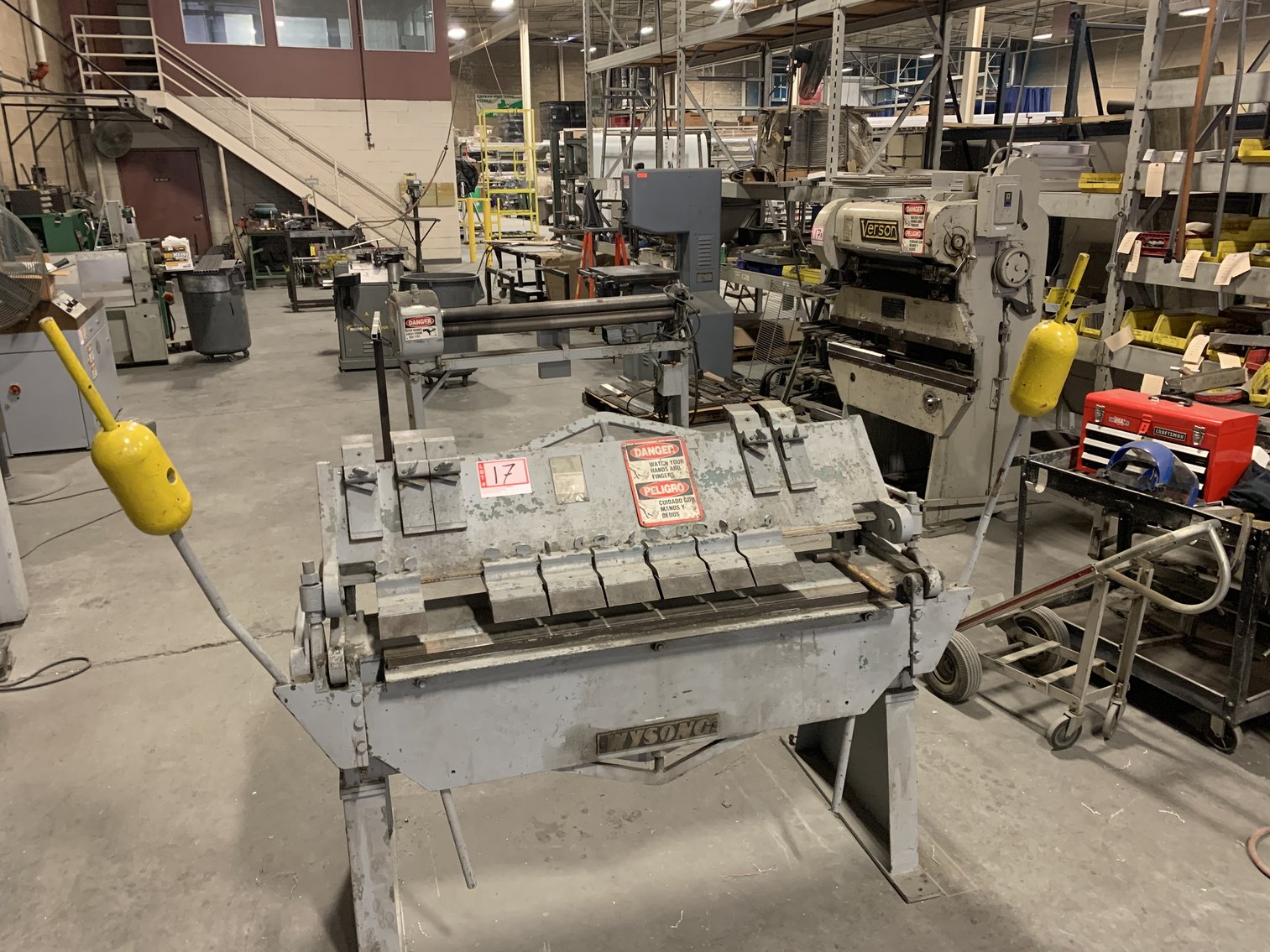 Ford F-250 Mobile Lube Truck, Ford F-550 Lift Truck, (2) Knuckle Boom Aerial Lifts, Pexto Shear, LVD 150 Ton Brake, Mercury Brake, Chicago Hand Brake, Johnson Stamping Press, Wysong Finger Brake, Verson Brake, Strippit Fabricator, Niagara Slip Roll, Apollo Horizontal Bender, Inceco Tube Bender, Clausing Lathe, Chicago Rivet Machine, Roller Conveyor System, Spot Welders, Forklifts, Drill Press, Notcher, Hoists, Saws, Grinders, Plastic Decking, Truck Decking, Raw Materials, and much more!